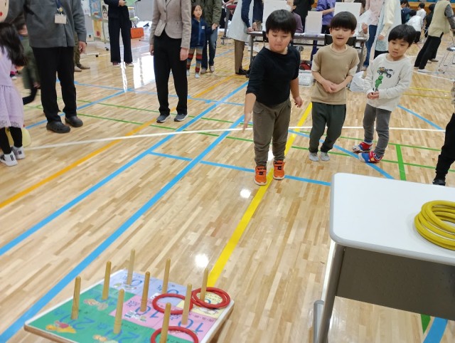 その後は各コーナーのブースを回り、手形をとったり、輪投げや歩数計、握力測定チャレンジなどのゲームコーナーで遊びましたよ。