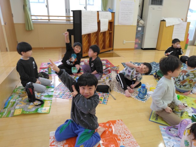 みんなで「明けましておめでとうございます!」と大きな声でご挨拶ができました。