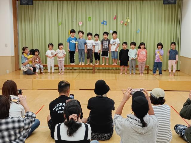 はじめはミニ発表会からスタート。この日のために練習した「手のひらを太陽に」のくまぐみさんバージョンを歌いました。