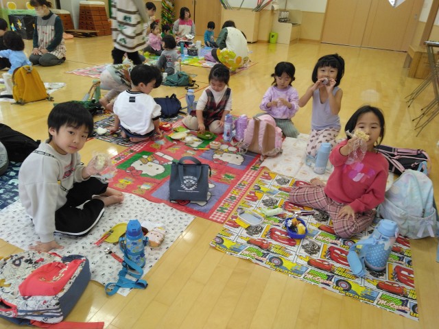 10時過ぎから「お弁当食べる?」「お腹すいたぁ~」とみんなお弁当が待ち遠しい様子でした