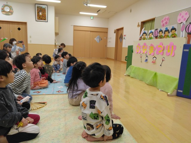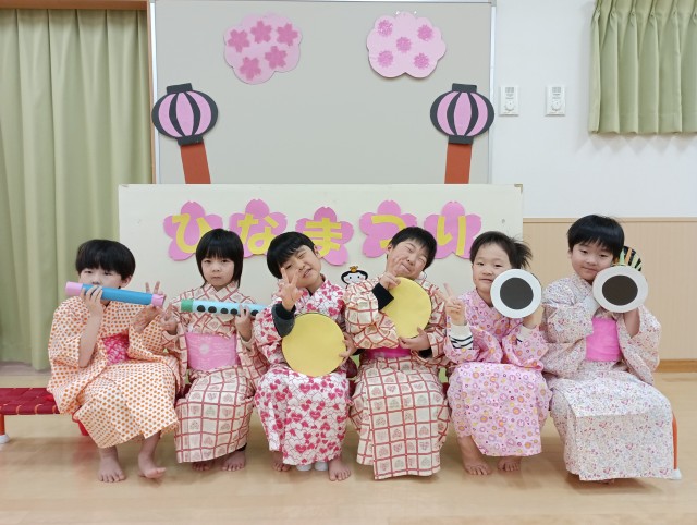 ひな人形は、女の子の身代わりとなり、病気や災いを引き受けてくれるお守りとされています。今日はみんなが一年元気に健康に過ごせるようにと願って、ボードビルや踊りを踊りました!
