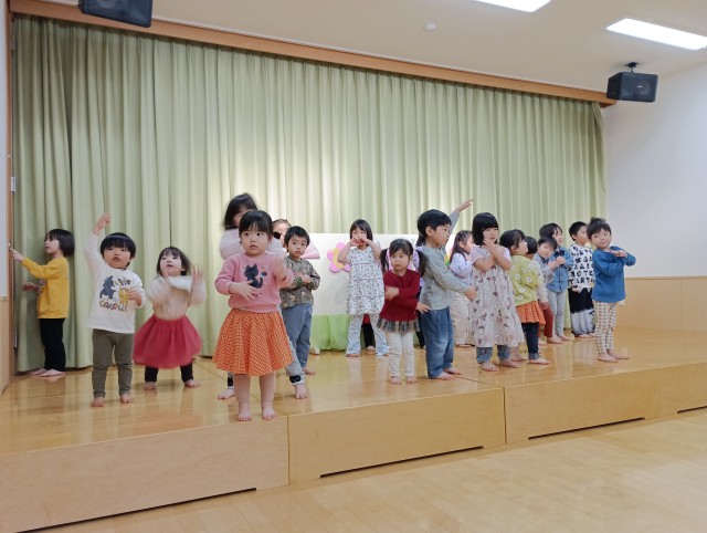 子ども達や職員、保護者が何人か選ばれてテテさんと一緒にフォーマンスをする場面があったので今度は自分がステージに立つんじゃないか?とドキドキ・ワクワクしながら楽しみました
