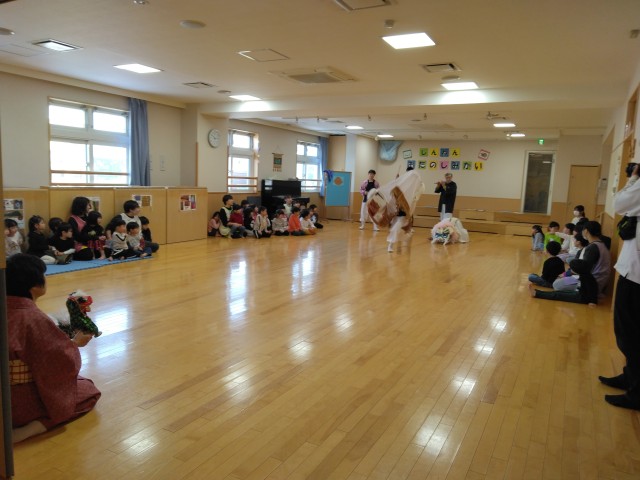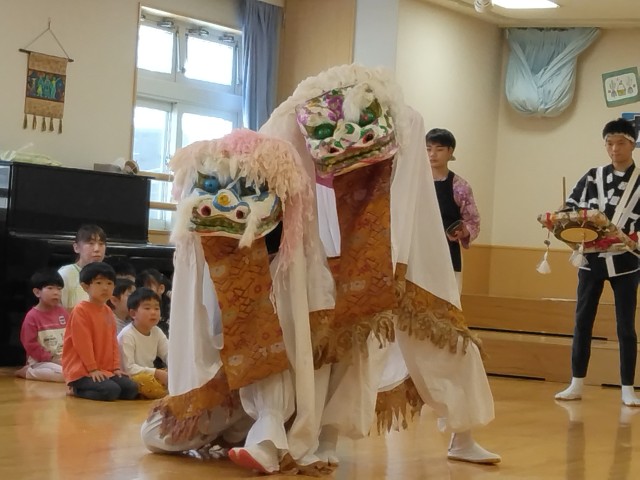 2階のお友だちは、驚いている様子もありましたが、年長のめろんさんは、何度か見たことがある経験から舞っている様子をじ~っと、見ている様子がありました。