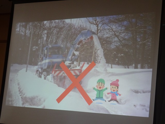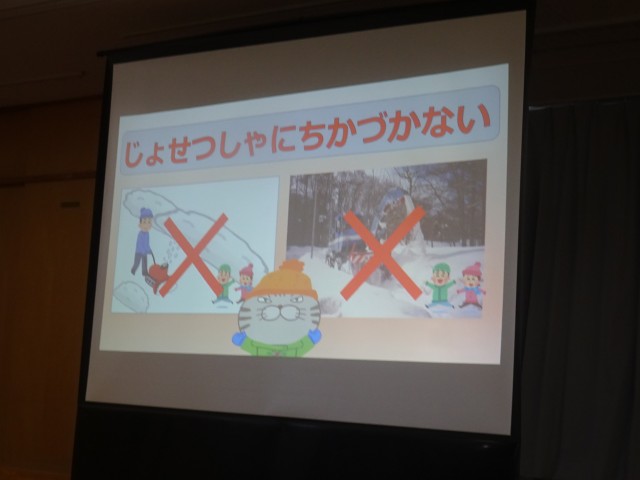 冬の交通安全教室がありました。指導員の方が来て「除雪車に近づかない」「雪道での道路の危険」など、冬に注意することをクイズ形式で教えてくれました。
